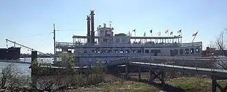 Creole Queen is a 1,000-passenger paddlewheel riverboat operating out of the Port of New Orleans. She is operated by New Orleans Paddlewheels, Inc. She was built by Halter Marine at Moss Point, Mississippi along the lines of a turn-of-the-century sternwheeler and was christened into service in September 1983. She is 190 feet (58 m) long and 40 feet (12 m) wide. She has three decks, two of which house three dining and banquet rooms and a third top deck for covered outside seating. Her gross tonnage is 397. She is docked at the Poydras Street dock adjacent to the Riverwalk and New Orleans Hilton Riverside and Towers. Her master is Captain Brian Clesi.