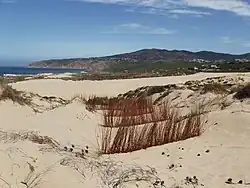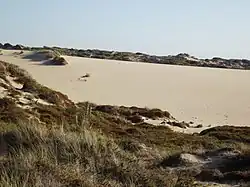The Cresmina Dune extends over 66 hectares and is a part of the Guincho-Oitavos dune system, located on the edge of the Sintra-Cascais Natural Park near Cascais in Portugal. This dune system is considered fairly unique because, as a result of the prevailing northwest winds, the sand from the Guincho and Cresmina beaches eventually returns to the sea 5 km further to the south near Guia, after migrating over the flat, rocky and largely uninhabited area of Cabo Raso.[1][2]