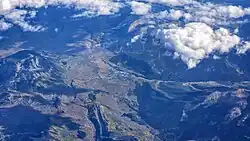 Crested Butte is served by the Gunnison–Crested Butte Regional Airport in Gunnison. The town runs a free bus service connecting the town of Crested Butte with the ski resort located northeast of town.[19] Additionally, buses connect the town to Gunnison. The town government is currently pursuing a transit and infrastructure strategy to "de-emphasize cars and focusing on walking, biking, rolling and transit".[20]