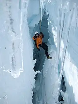 Crevasse rescue (or crevasse-extraction) is a set of techniques in mountaineering where climbers use their equipment to pull a climber, who has just fallen into a crevasse, to safety.[1] Crevasse rescue is considered a core skill set in alpine climbing, but difficult to do efficiently.[1][2] It is typically encountered by rope teams on glaciers.[2][3]
