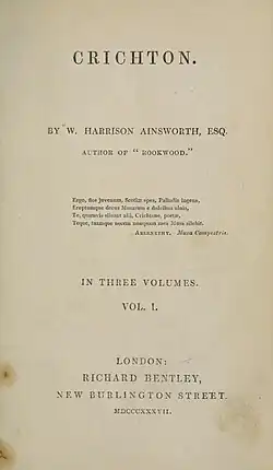 Crichton is an 1837 historical novel by the British writer William Harrison Ainsworth.[1] It was published in three volumes by Richard Bentley.[2] It is inspired by the life of the sixteenth century Scottish polymath James Crichton, known as the "Admirable Crichton". It was Ainsworth's follow-up to the 1834 bestselling novel Rookwood.[3]
