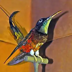 The crimson topaz (Topaza pella) is a species of hummingbird in the family Trochilidae. It is found in Brazil, French Guiana, Guyana, Suriname, and Venezuela.[3][4]