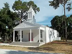 Sixteen years after Crocker's death, Bay Haven Baptist Church purchased the building and had it moved to their property on Bradenton Road. When Bay Haven purchased a new building, a Spanish mission congregation utilized it until the early 1980s.[3] When they left, the church was moved again by the historic preservationists in 1986 to Florida Avenue and was historically designated in 1995.[4][5] The church continued to be used by Throne of Grace Charismatic Episcopal Church[6] until 2004 when it was officially decommissioned due to its poor condition.[7] In 2005, a campaign began to save the building from demolition.[8] With the help of the county, Jane Kirschner, former president of the historical society,[1] took ownership of the building and coordinated the church's final move to Pioneer Park in 2006.[9][10] The county provided over $160,000 to move the church for the historical society.[11] It now is used as their gathering place for educational and social events.[12]