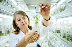 The Global Crop Diversity Trust is an independent international organisation which exists to ensure the conservation and availability of crop diversity for food security worldwide. It was established through a partnership between the United Nations Food and Agriculture Organization (FAO) and CGIAR acting through Bioversity International.[25] The CGIAR is a consortium of international agriculture research centers (IARC) and others that each conduct research on and preserve germplasm from a particular crop or animal species. The genebanks of CGIAR centers hold some of the world's largest off site collections of plant genetic resources in trust for the world community. Collectively, the CGIAR genebanks contain more than 778,000 accessions of more than 3,000 crop, forage, and agroforestry species.[26] The collection includes farmers' varieties and improved varieties and, in substantial measure, the wild species from which those varieties were created.[3] National germplasm storage centers include the U.S. Department of Agriculture's National Center for Genetic Resources Preservation, India's National Bureau of Animal Genetic Resources, the Taiwan Livestock Research Institute, and the proposed Australian Network of Plant Genetic Resource Centers.[27][28][29][30]
