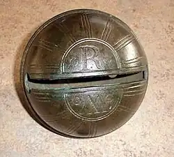 Crotal bells (Greek 'crotalon' – castanet or rattle) are various types of small bells or rattles. They were produced in various pre-Columbian cultures. In Europe they were probably made from before the early Middle Ages; though many founders cast bells of this type, the Robert Wells bell foundry of Aldbourne, Wiltshire, produced the largest range. The first medieval designs came in two separate halves into which a metal pea was introduced and the two halves were then soldered or crimped together. Somewhere around 1400 they were cast in a single piece with a ball of metal inside.[1]
