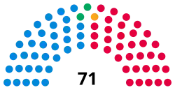 Since the last boundary changes in 2018 the council has comprised 70 councillors representing 28 wards, with each ward electing one, two or three councillors. Elections are held every four years.[36] The addition of the directly elected mayor in 2022 means that there are now 71 seats on the council overall. The mayor is also elected every four years, at the same time as the council.[37]