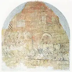 ![]() A fresco from the Castle of Cardona depicting the Siege of Girona in 1285; now preserved in the Museu Nacional d'Art de Catalunya | |||||||
