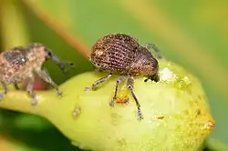 Kuschelorhynchus macadamiae uses fruits of Macadamia (Proteaceae) and is a pest of macadamia plantations.[1]