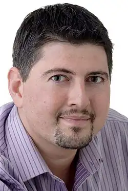 Csanád Szegedi (Hungarian: [ˈt͡ʃɒnaːd ˈsɛɡɛdi]; born 22 September 1982) is a Hungarian politician and former Member of the European Parliament.[1] He was a member of the Hungarian radical nationalist Jobbik political party between 2003 and 2012, which at the time had been accused of antisemitism.[2] In 2012, Szegedi gained international attention after acknowledging that he had Jewish roots.[3] He was also accused of previous bribery to try to keep that revelation a secret,[3] and subsequently resigned from all Jobbik political posts. Szegedi has since become a religious Jew.[4]