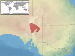 C. maculosus is endemic to the three largest dry salt lakes of inner South Australia (Lake Eyre, Lake Callabonna, and Lake Torrens), with the densest population found in Lake Eyre.[3][5] Three habitat characteristics characterize its distribution: a surface crust, a thick layer of dry sand or clay under the crust, and a constant source of humidity. This dragon lizard inhabits the edges of the lakes where it burrows in the damp sediments under the salt crust.[3]