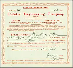 The Cubitts Engineering Co. Ltd. was originally a construction company which built much of Central London - Covent Garden Market, the Cenotaph and the 'new' east wing of Buckingham Palace. It had been founded by Thomas Cubitt around 1815, in association with his brothers William and Lewis. In 1883 the business was acquired by Holland & Hannen, a leading competitor, and became known as Holland & Hannen and Cubitts and subsequently as Holland, Hannen & Cubitts.[1]