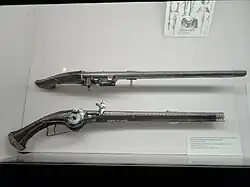 - ^ Oman, Charles (1987) [1937] A History of the Art of War in the Sixteenth Century, London: Greenhill, ISBN 0-947898-69-7, pp. 85-88. The first recorded use of pistols from horseback, by German cavalry, dates from 1545.