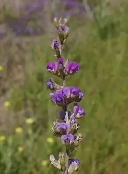 Cullen tenax, commonly known as emu foot, is a herbaceous, perennial shrub. Often found in forest or on heavy soils in medium to low rainfall areas in south eastern Australia.[1][2]