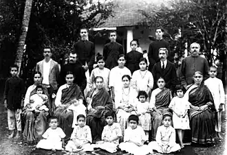 An extended Catholic family in Mangalore, belonging to the Bāmaṇ caste. Circa. 1929.