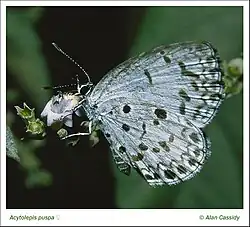 2. ^ a b Beccaloni, G.; Scoble, M.; Kitching, I.; Simonsen, T.; Robinson, G.; Pitkin, B.; Hine, A.; Lyal, C., eds. (2003). "​Acytolepis puspa​". The Global Lepidoptera Names Index. Natural History Museum.