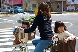 Cycling is one of Japan's major modes of transport for trips of up to 3 km (1.9 mi), and makes up a significant proportion of trips within 10 km (6.2 mi).[4] However, due to the high availability of other transport modes, longer distance cycling is less common in Japan than in the United States. Cycling speeds are generally slow and recreational. People generally do not wear gear or helmets as cycling serves primarily as a last mile (transportation) solution.[5] and/or economical or hour independent alternative to extensive railway-feeder bus or municipal bus service.