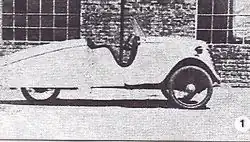 ![]() Cyklonetka and its creators, Eugeniusz Knawe, Jan Knawe, and Wacław Knawe, in Warsaw, Poland, 1939. | |