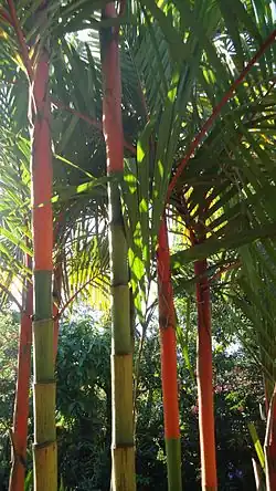 Cyrtostachys is a genus of flowering plant in the family Arecaceae. Its species are found in southeast Asia, New Guinea, and in some of the South-Central and Southwest Pacific island habitats of the Oceanian realm.[1][2][3]