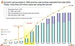 - ^ a b Korean site tackles might of MySpace Archived 2011-02-28 at the Wayback Machine ft.com, August 31, 2006