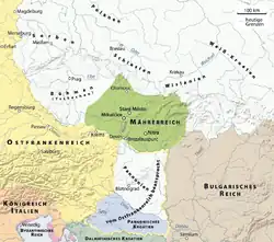 The beginnings of relations between the Slovak and Czech peoples date back to the early Middle Ages. In 833, the Great Moravian Empire was established as the first joint state of the West Slavs in the territory of present-day Moravia and Western Slovakia. After the collapse of Great Moravia at the beginning of the 10th century, the historical paths of the two regions diverged for a long time: the territory of Slovakia became part of the Kingdom of Hungary, while the Czechs established their own Kingdom of Bohemia under various dynasties.[1] In the centuries that followed, there were therefore only indirect contacts. However, both ethnic groups adopted Christianity (partly through the Slavic missionaries Cyril and Methodius in the 9th century) and developed closely related West Slavic languages, so that a sense of cultural kinship persisted. Until the 16th century, the Slovaks belonged to Hungary, while the lands of the Czechs remained independent or were under foreign rule (House of Luxembourg).