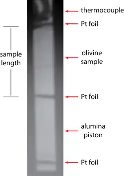 The design of the anvils used in the D-DIA allows for the transmission of synchrotron X-ray radiation through the sample. This X-ray data can be used for both in-situ stress and strain measurements to be taken during the deformation of the sample.[2][3]