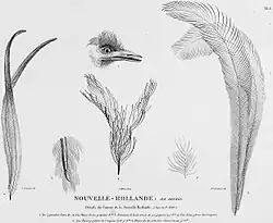 Charles Alexandre Lesueur's 1807 plate of the head, wing and feathers of a possible King Island emu