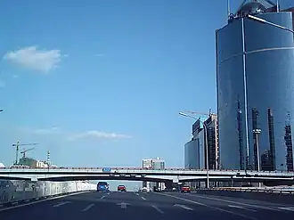 Guomao Bridge. The Guomao area is characterized by many skyscrapers.