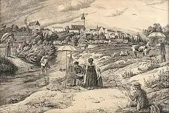 In the early 19th century, the then-bucolic village of Dachau (located just 12 miles from Munich) began attracting landscape painters.[1] By the second half of the century, Barbizon-influenced painters like Carl Spitzweg and Christian Morgenstern, and academic painters like Wilhelm von Diez and Eduard Schleich the Elder had worked in and around Dachau.[1]