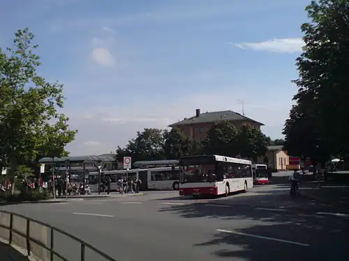 Dachau station (German: Dachau Bahnhof) is a station in the Bavarian town of Dachau on the Munich S-Bahn network. It is classified by Deutsche Bahn as a category 3 station[2] and it has five platform tracks. It is served daily by about 190 trains operated by Deutsche Bahn, including 150 S-Bahn trains. Dachau station is on the Munich–Treuchtlingen railway and is the beginning of the Dachau–Altomünster railway.