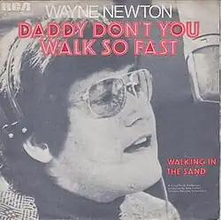 "Daddy Don't You Walk So Fast" is a song written by Peter Callander and Geoff Stephens and performed by Wayne Newton. It appeared on Newton's 1972 album, Daddy Don't You Walk So Fast.[1] In the lyrics, the singer is leaving his family after falling out of love with his wife. When his daughter tries to catch up with him, saying "Daddy, don't you walk so fast," it makes him change his mind about ending his marriage.[2]