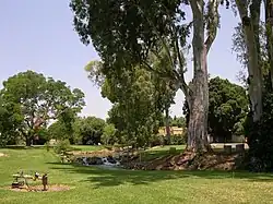 Dafna (Hebrew: דפנה) is a kibbutz in the Upper Galilee in northern Israel. Located seven kilometres east of Kiryat Shmona and surrounded by three streams of the Dan River, it falls under the jurisdiction of Upper Galilee Regional Council. The kibbutz was founded on 3 May 1939 as a Tower and Stockade settlement, the first such settlement in the northern Hula Valley. Dafna, Beit Hillel, She'ar Yashuv and Dan were known as the "Ussishkin Fortresses", named after Menahem Ussishkin. In 2023 it had a population of 1,077.[1]