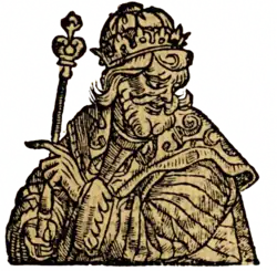 ![]() A fanciful illustration of Dafydd ab Owain Gwynedd from the Historie of Cambria (1584)[1] | |