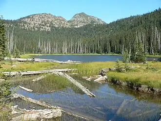 Dagger Lake is located in North Cascades National Park, in the U. S. state of Washington.[2] Dagger Lake is accessible via the Twisp Pass Trail and the lake is 7.6 mi (12.2 km) from the North Cascades Highway or 4.7 mi (7.6 km) from the Twisp River Road trailhead in Wenatchee National Forest.[3]
