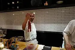 Daisuke Nakazawa (born 1979) is head chef of the eponymous Sushi Nakazawa in New York City.[1] Nakazawa apprenticed at Sukiyabashi Jiro under Jiro Ono,[2] and appeared in the David Gelb documentary Jiro Dreams of Sushi. Nakazawa lived and worked in Seattle, at Sushi Kashiba under chef Shiro Kashiba, another Jiro Ono mentored chef, for several years before coming to New York to open Sushi Nakazawa, where he remains.[3][4]