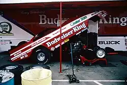 Armstrong continued as Bernstein's crew chief in 1987 and they used a controversial Buick LeSabre body.[3] Bernstein won a record-tying seven national events and achieved their third consecutive Winston points title.[3] The Buick had the first 5.3 second run at the Winston All-stars race with a 5.39-second e.t.[3] Bernstein tied another Don Prudhomme Funny Car record when he won his fourth straight championship in 1988.[3] His Buick Reatta made six finals, winning three times, achieved six low e.t., and qualified number one five times. In 1989, Bernstein finished third in Funny Car before moving up into the Top Fuel class in the following season.[3]