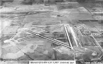 It was initially designated as "East Field" and had three 8,000-foot paved runways, with a large paved ramp and hangar on the east side. Dallam also had a substantial number of support buildings on a street grid to the east of the ramp. Its history is similar to Hartley Field, being an auxiliary glider airfield in 1942, and used by the 415th Bombardment Group 521st Fighter-Bomber Squadron. The 521st performed initially A-24 Banshee dive bomber training, then switched to P-39 Airacobra fighter pilot replacement training later in 1943. With Second Air Force taking over the field in December 1944, the 507th Fighter Group used the field for P-47N Thunderbolt escort pilot training for a few months until training ended at the end of April, 1945.[2][6]