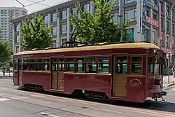 Trams in Dalian have a long history, stretching as far back as the late Qing dynasty. On September 25, 1909, the South Manchuria Railway opened the first tram line for testing in Dalian. The city at that time was under Japanese occupation. This was the first example of public transportation in the city, making Dalian one of the earliest mainland Chinese cities to have a public transport service. The original tram line ran from the Electrical Recreation Grounds (present-day Eton Place) to Tai Pier (now known as Harbour Bridge) via Taisho Road (present-day Zhongshan and Renmin Roads) spanning 2.45 kilometers (1.52 mi). There were thirty Type-11 tram cars in service at that time. The body of the Type-11 tram car was manufactured by Preston works in the United States whereas its chassis was manufactured by Montien Gibson Manufacturing in the United Kingdom. Its electrical components were manufactured in Germany. This type of tram car was built with a wooden body and two motorman's seats. It could carry 72 passengers per car in normal use and up to 145 at maximum capacity. At that time the Type-11 tram car was commonly known as the, "American large wooden cages." Later, new tram lines were added and two tram yards were built next to Minzhu Square and Jiefang Square. By 1945, a total of 11 tram routes, three premises, and two repair workshops were in operation.