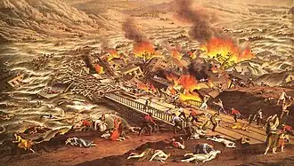 Roman dam construction was characterized by "the Romans' ability to plan and organize engineering construction on a grand scale."[14] Roman planners introduced the then-novel concept of large reservoir dams which could secure a permanent water supply for urban settlements over the dry season.[15] Their pioneering use of water-proof hydraulic mortar and particularly Roman concrete allowed for much larger dam structures than previously built,[14] such as the Lake Homs Dam, possibly the largest water barrier to that date,[16] and the Harbaqa Dam, both in Roman Syria. The highest Roman dam was the Subiaco Dam near Rome; its record height of 50 m (160 ft) remained unsurpassed until its accidental destruction in 1305.[17]