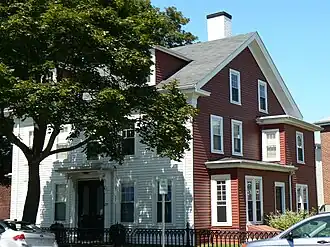 The Damon House is a historic house in Arlington, Massachusetts. Although traditionally associated with the Rev. David Damon of the First Parish Church, this 2+1⁄2-story wood-frame house was probably built c. 1855, after Damon's death, by one of his descendants. It is five bays wide, with a side gable roof, and is predominantly Greek Revival in its styling. In 1875 it underwent some alteration, adding the Italianate front portico and small side additions. The house remained in Damon family hands into the 1940s.[2]
