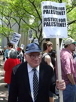 As a high school student, Goldstick was a member of the National Federation of Labor Youth. He became politically involved in student movement politics at the University of Toronto while an undergraduate there in the 1950s. Later, he campaigned with a young Tariq Ali at Oxford against the Vietnam war. Since returning to Canada he has worked on many direct action campaigns including students issues like tuition reduction and elimination; against sexism, homophobia and racism such as the Dr Chun case;[8] international solidarity with the ANC, Black Panthers, Angela Davis, and FMLN; as well as electoral politics on the municipal, provincial and federal level. For many years he was involved in the University of Toronto Marxist Institute. Goldstick is currently a member of the Council of Canadians and is active in peace, anti-war, and Palestinian solidarity movements. He is a member of Not In Our Name, an anti-Zionist group and has participated each week since the mid 2000s in a picket of Chapters Indigo bookstore on Bay Street. He is a supporter of the Canadian Peace Alliance and presented on "Sovereignty and Global Peace" at the 2010 Canadian Peace Research Association.[9]