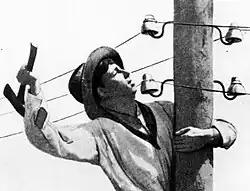 Despite his body being identified by police and a priest before being burnt, there have also been stories that both Dan and Steve survived the fire.[17] There is little evidence to support these claims.[18][19] One man, James Ryan, claimed he was Dan Kelly. In 1934 he went on stage at the Brisbane Exhibition and told stories about the Kelly Gang. He died on 29 July 1948, after being struck by a train.[20] The Ipswich City Council have put a memorial on his grave. In 2001, scientists took a small piece of bone from the grave of Charles Devine Tindall at Toowoomba, Queensland, to see if they could find DNA to prove he was Dan Kelly.[21] Devine, who had burn scars on his body, told his family he was really Dan.[22] He said he had hidden under the floor of the Glenrowan hotel and escaped after the fire.[21] An archaeological dig at the site of the hotel by Adam Ford in 2008 found that there was no cellar or other hiding place under the floors.[23] In October 1902, a Melbourne newspaper printed a story that Dan Kelly and Steve Hart were living in South Africa,[24] where the men allegedly fought in the Boer War. Another man, Jim Davis from Darra (a suburb of Brisbane, Queensland), said in 1938 that he was Dan Kelly. He claimed that he, Steve Hart and Joe Byrne had escaped from the hotel.[25] He also said he was born at the Eureka Stockade in 1854, which makes him too old to have really been Dan.