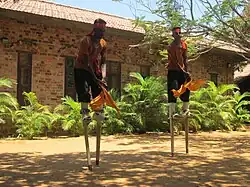 Poikkaal Kuthirai literally means "false foot horse" in Tamil and the dance involves the usage of a dummy horse.[97][98] The dancers get into a wooden frame designed like the body of a horse along the hips.[99][100] The dummy horse is made of jute, cardboard or paper and richly decorated with glass pieces. The dance is performed by both men and women and the dancer enacts movements as if riding on a horse back.[60] The art was popularized in the early Chola period and finds mention in the Tamil literature Silappadikaram as "marakkal attam", a dance with wooden legs. Wooden legs are used by the performers to look taller like a horse and sound like the hooves of a horse. The dancers may sometimes brandish a sword or a whip and the dance is accompanied by folk music.[77][101]
