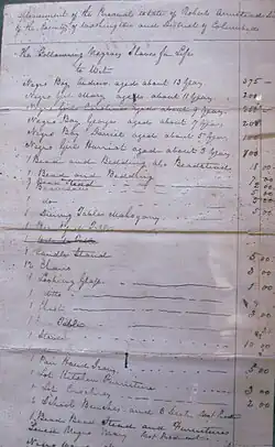 - ^ 40-year-old Mary was listed as "not produced," on Susan's inventory and with the comment that furniture had been loaned to her. Bell was not listed, because he was not owned by the Armisteads at that time.[8]