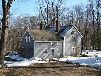 The oldest portion of this 2+1⁄2-story timber-frame house was built c. 1695 by Daniel Brooks. Its interior has retained many of its early 18th century features, including exposed beams, wide pine floorboards, and unbaked bricks used as insulation between inner and outer wall coverings. Eleazar Brooks, a descendant, was a prominent local politician at the time of the American Revolution.[2]
