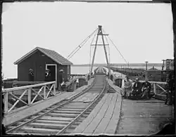 As McCallum's assistant was appointed Herman Haupt, who also was called to service in early 1862. The two worked practically independent from each other.[32] While McCallum was the administrative head of the U.S. Military Railroads, Herman Haupt was in charge of the operations of the railroad in the field. At the time that McCallum assumed his duties, the seven-mile road from Washington to Alexandria, Virginia, was the only railroad in federal government control. By May 1862 the Orange and Alexandria Railroad, which ran from Alexandria southwest toward Orange, Virginia, was an important supply line, as was the Manassas Gap Railroad, which covered the territory between Manassas Junction and Front Royal and Strasburg.[31] By the end of the war, the U.S. Military Railroads had, at different times during the war, used parts of 17 railroads as military lines in Virginia, Maryland, and Pennsylvania and 23 in Tennessee, Georgia, Mississippi, Arkansas, and North Carolina. In addition, the small Construction Corps grew from about 300 men in 1863 to nearly 10,000 men by the end of the war.[31]