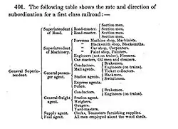 Organization scheme as pictured by McCallum, 1856Table shows the rate and direction of subordination for a first class railroad, from Vose (1857).