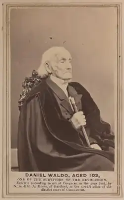 Daniel Waldo (September 10, 1762 โ July 30, 1864)[1] was an American clergyman, born in Windham, Connecticut. He served in the American Revolutionary War and later became a missionary and clergyman. In 1856 at age 94, Waldo was named Chaplain of the United States House of Representatives. His ancestor Deacon Cornelius Waldo arrived in the American colonies from Ipswich, England around 1654.[2]