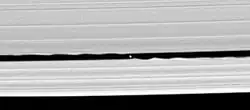 ![]() Cassini probe image of Daphnis surrounded by Saturn's rings (2017) | |
