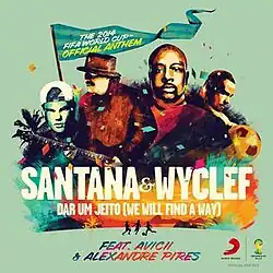 "Dar um Jeito (We Will Find a Way)" is the official anthem of the 2014 FIFA World Cup held in Brazil performed by Carlos Santana and Wyclef Jean featuring Avicii and Alexandre Pires. The song was executive-produced and co-written by Arnon Woolfson who originated the project. It served as an official anthem for the 2014 FIFA World Cup, with one verse in English and the other in Portuguese, and is included on the album One Love, One Rhythm – The 2014 FIFA World Cup Official Album.[1] The song peaked at number 14 on the US Hot Dance Club Songs chart.[2]