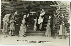 The story of the Lost Colony became popular in the United States following several dramatic accounts published in the 1830s.[3]: 124–130  Eleanor Dare's daughter, Virginia Dare, who was the first child born in an English colony in the New World, became an iconic figure, and celebrations of her birthday became a major North Carolina tourist attraction.[3]: 276–277, 294  In 1937, a Paul Green play, The Lost Colony, debuted on Roanoke Island. President Franklin D. Roosevelt attended a performance on Virginia Dare's 350th birthday.[3]: 141, 347